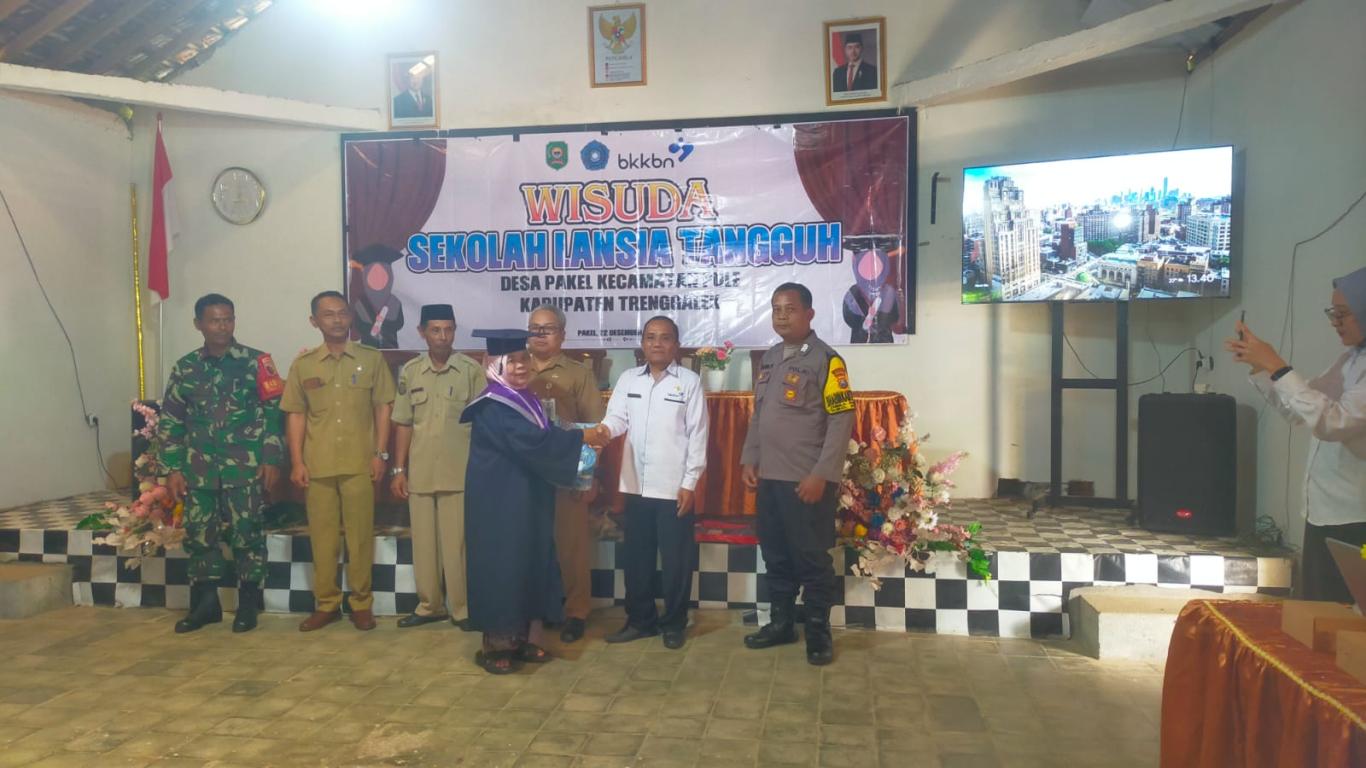 TRENGGALEK, PULE – Usia senja bukanlah penghalang untuk terus berkarya, belajar, dan berdaya. Semangat inilah yang terpancar jelas di wajah 24 wisudawan dan wisudawati Sekolah Lansia Tangguh (Selantang) Desa Pakel, Kecamatan Pule, Kabupaten Trenggalek. Pada Senin pagi (22/12/2025), Aula Balai Desa Pakel berubah menjadi ruang penuh haru dan kebanggaan saat prosesi wisuda berlangsung khidmat.